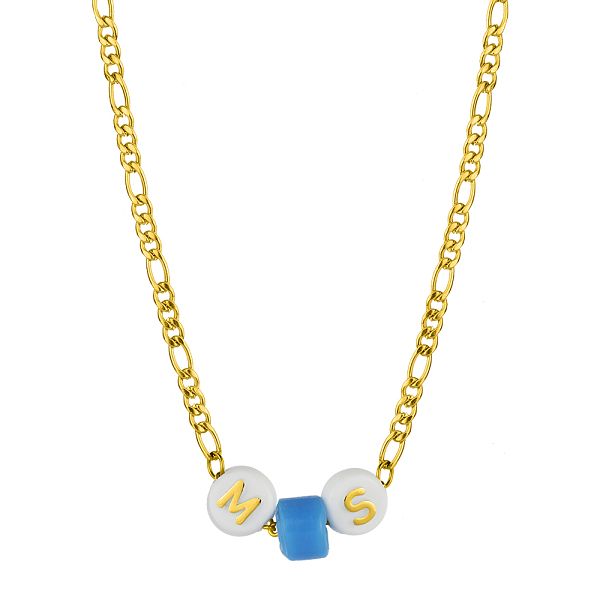 Κολιέ Από Ανοξείδωτο Ατσάλι Επιχρυσωμένο Με Χάντρα Και Μονογράμματα AA12028