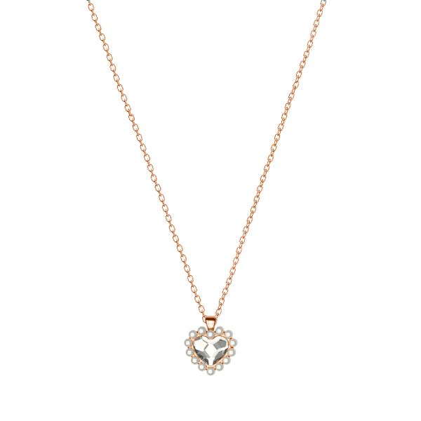 Κολιέ Από Ασήμι 925 Ροζ Επιχρυσωμένο Με Καρδιά Από Μαργαριτάρια Swarovski EX15429