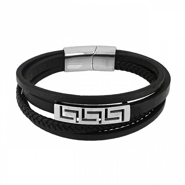 Βραχιόλι Από Δέρμα Και Ατσάλι Με Μαίανδρο TU29861