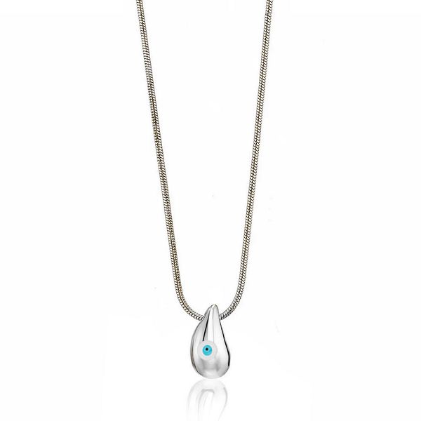Κολίε Από Ατσάλι Drop Με Ματάκι Λευκό AA12979