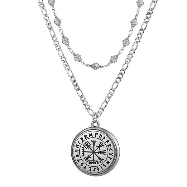 Σετ Κολιέ Από Ανοξείδωτο Ατσάλι Και Ορείχαλκο Με Πυξίδα Viking AA15655