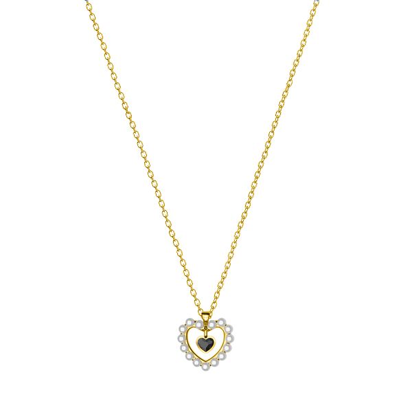 Κολιέ Από Ασήμι 925 Επιχρυσωμένο Με Καρδιά Από Μαργαριτάρια Και Swarovski EX15425