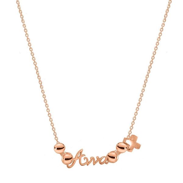 Κολιέ Από Ασήμι 925 Ροζ Επιχρυσωμένο Με Όνομα Και Σταυρό EX18655