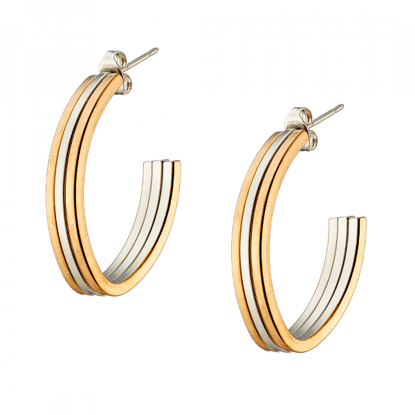 Σκουλαρίκια Κρίκοι Από Ατσάλι Και Ατσάλι Επιχρυσωμένο 24Κ AS40143