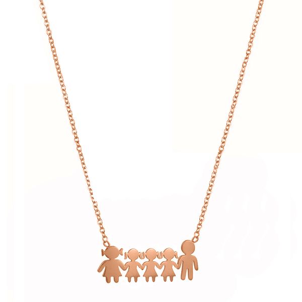 Κολιέ Από Ατσάλι Ροζ Επιχρυσωμένο Με Οικογένεια-Μαμά-Μπαμπά-Κόρες MI12812