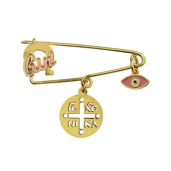 Παραμάνα Από Ασήμι 925 Επιχρυσωμένο Με Ματάκι Και Σταυρό KO70615