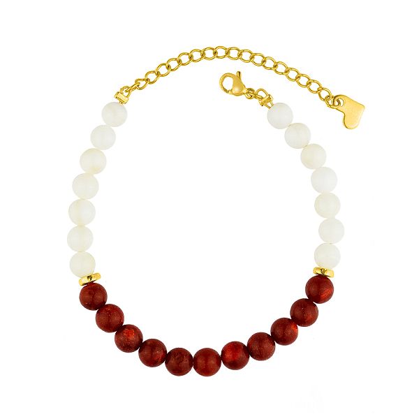 Βραχιόλι Από Ανοξείδωτο Ατσάλι Επιχρυσωμένο Με Μηλοκόραλο Και Φίλντισι AA29455