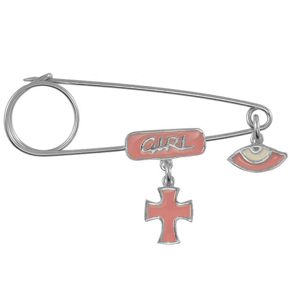 Παραμάνα Από Ασήμι 925 Επιπλατινωμένο Hello Kitty Με Ματάκι Και Σταυρό KO70488