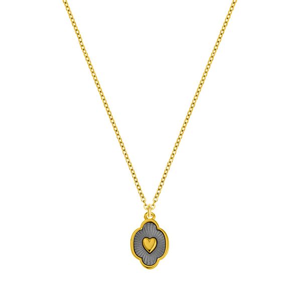 Κολιέ Απο Ατσάλι Επιχρυσωμένο 24Κ Με Καρδιά Γκρι AA14806