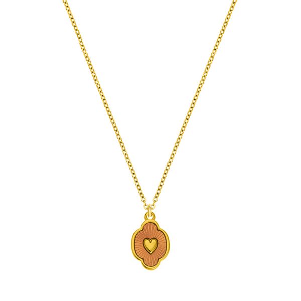 Κολιέ Απο Ατσάλι Επιχρυσωμένο 24Κ Με Καρδιά Πορτοκαλί AA14842