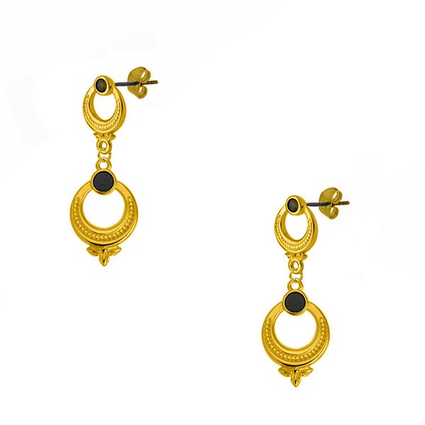 Σκουλαρίκια Από Ορείχαλκο Επιχρυσωμένο 24Κ Με Έθνικ Στοιχείο Μαύρο AA48487
