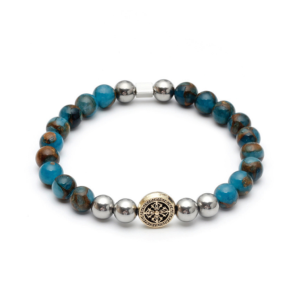 Βραχιόλι Ατσάλινο Με Χάντρες Ημιπολύτιμων Λίθων L31A-B024-1