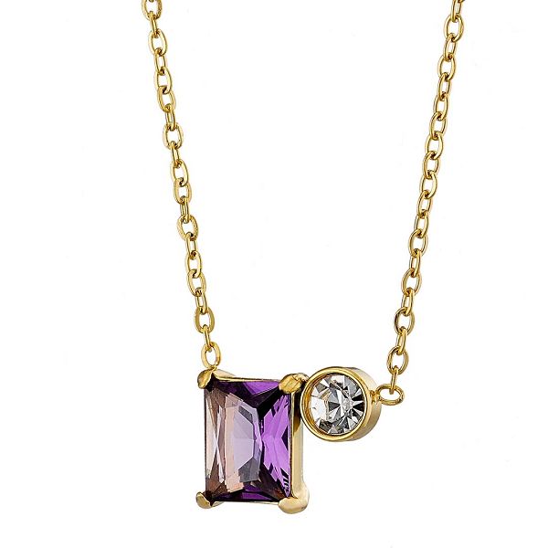 Κολίε Από Ατσάλι Επιχρυσωμένο 24Κ Με Ζιργκόν Μωβ AS12728