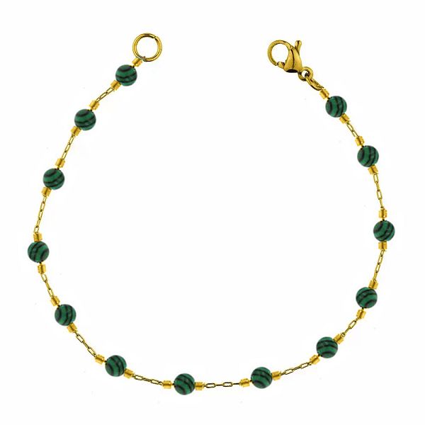 Βραχιόλι Αλυσίδα Ροζάριο Από Ανοξείδωτο Ατσάλι Επιχρυσωμένο Με Ημιπολύτιμο Λίθο Μαλαχίτη TA22524