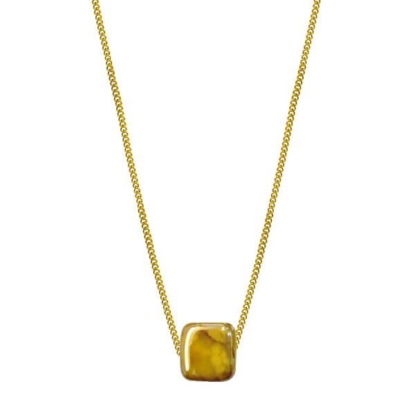 Κολιέ Από Ανοξείδωτο Ατσάλι Επιχρυσωμένο Με Χάντρα Μουσταρδί AA17230