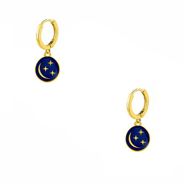 Σκουλαρίκια Κρίκοι Από Ορείχαλκο Επιχρυσωμένο 24Κ Με Φεγγάρι Και Αστέρια AA45164