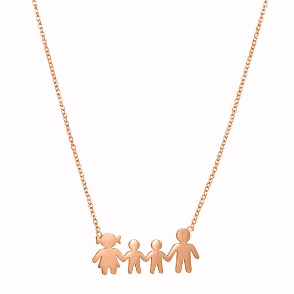 Κολιέ Από Ατσάλι Ροζ Επιχρυσωμένο Με Οικογένεια-Μαμά-Μπαμπά-Γιούς MI12794