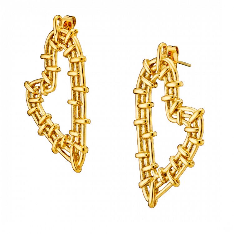 Σκουλαρίκια Από Ατσάλι Επιχρυσωμένο 24Κ Με Καρδιά AS40116