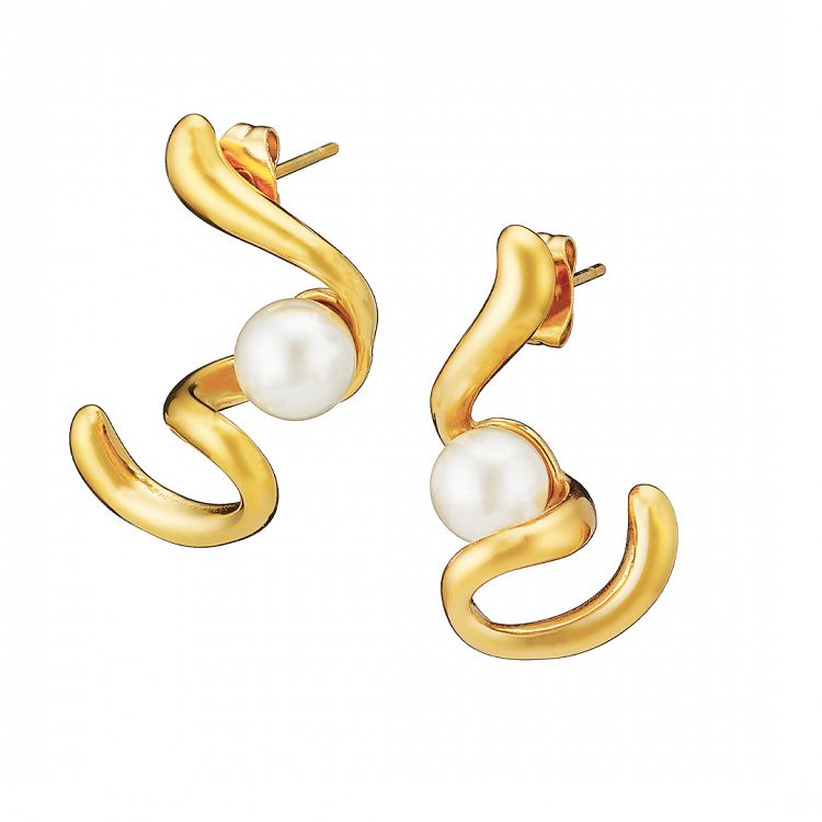 Σκουλαρίκια Από Ατσάλι Επιχρυσωμένο 24Κ Με Μαργαριτάρι AS40176
