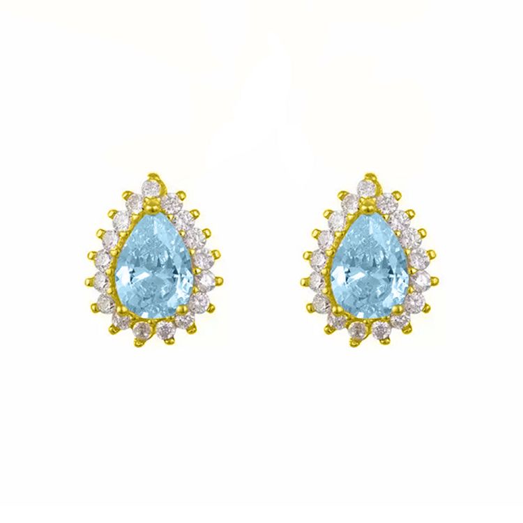 Σκουλαρίκια Ροζέτα Από Ασήμι 925 Επιχρυσωμένο Δάκρυ Με Ζιργκόν Aqua SS47795