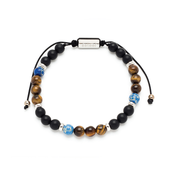 Βραχιόλι Μακραμέ Με Χάντρες Όνυχα, Μάτι Τίγρη Και Λάπις Λάζουλι L31A-B037-3