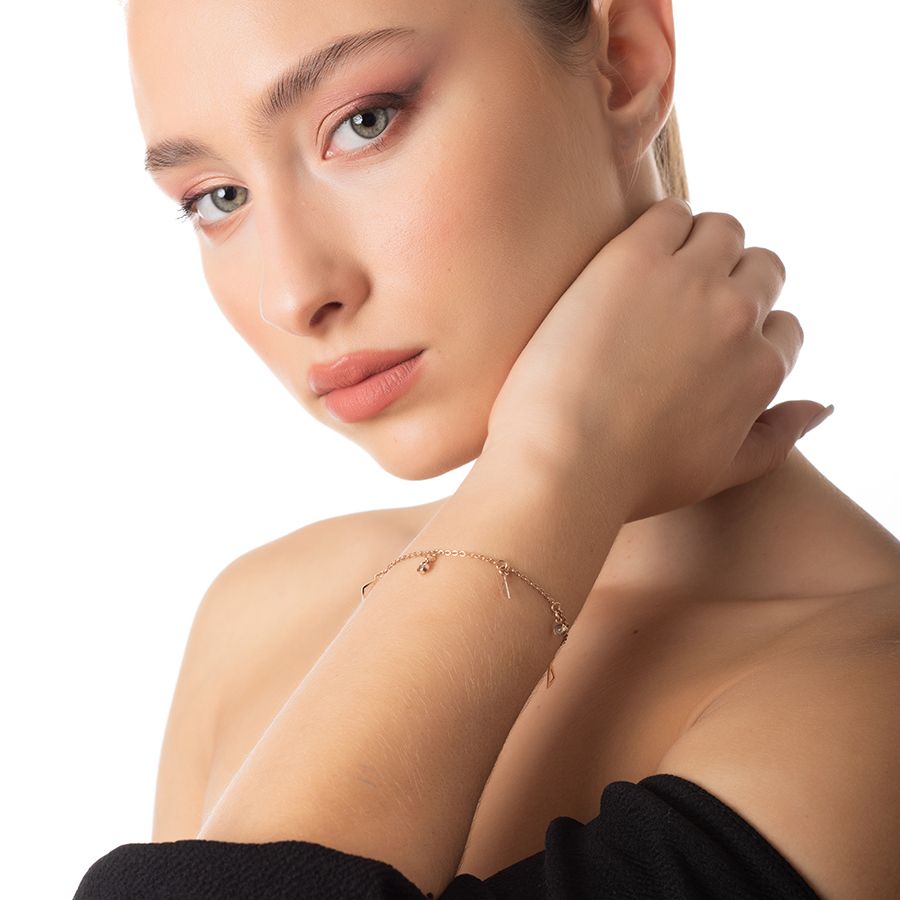 Ένα μοναδικό χειροποίητο βραχιόλι της εταιρείας AMOR AMOR από ανοξείδωτο ατσάλι ροζ επιχρυσωμένο με κούμπωμα ασφαλείας.