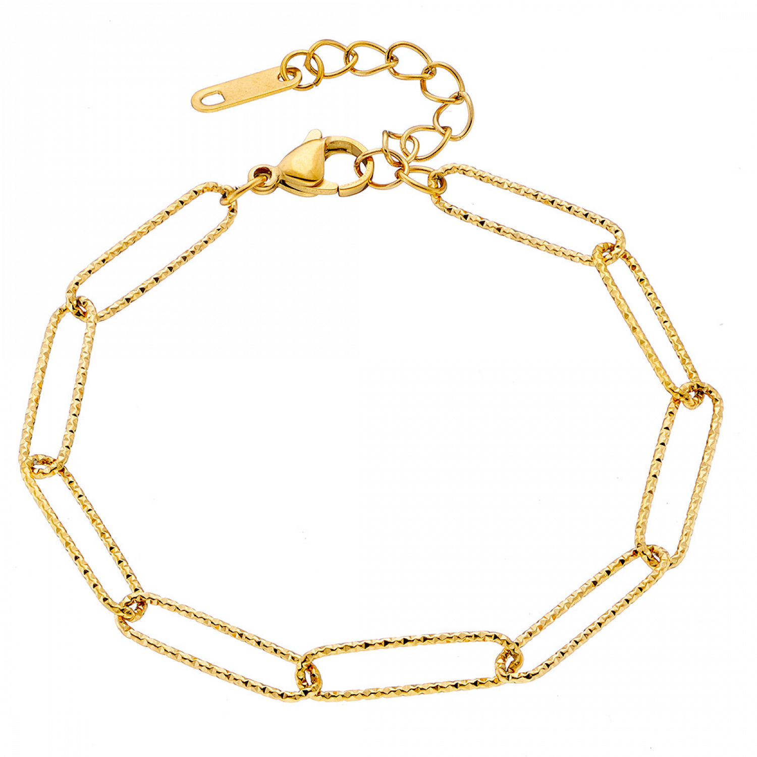 Μοναδικό χειροποίητο βραχιόλι της εταιρείας AMOR AMOR από ανοξείδωτο ατσάλι επιχρυσωμένο με κούμπωμα ασφαλείας. Κόσμημα από ανοξείδωτο ατσάλι δεν μπορεί σε καμία περίπτωση να υποστεί οξείδωση (σκουριά), δεν μαυρίζει ποτέ και ασφαλώς δεν δημιουργεί αλλεργίες (υποαλλεργικό). Μπορεί να φορεθεί καθημερινά και χωρίς κανέναν περιορισμό κάτω από οποιεσδήποτε συνθήκες π.χ. επαφή με νερό, ιδρώτα ακόμα και στην θάλασσα. Έτσι λοιπόν, ένα κόσμημα το οποίο είναι κατασκευασμένο από ανοξείδωτο ατσάλι είναι σίγουρο πως θα διατηρήσει για πάντα τη μοναδική λάμψη του.