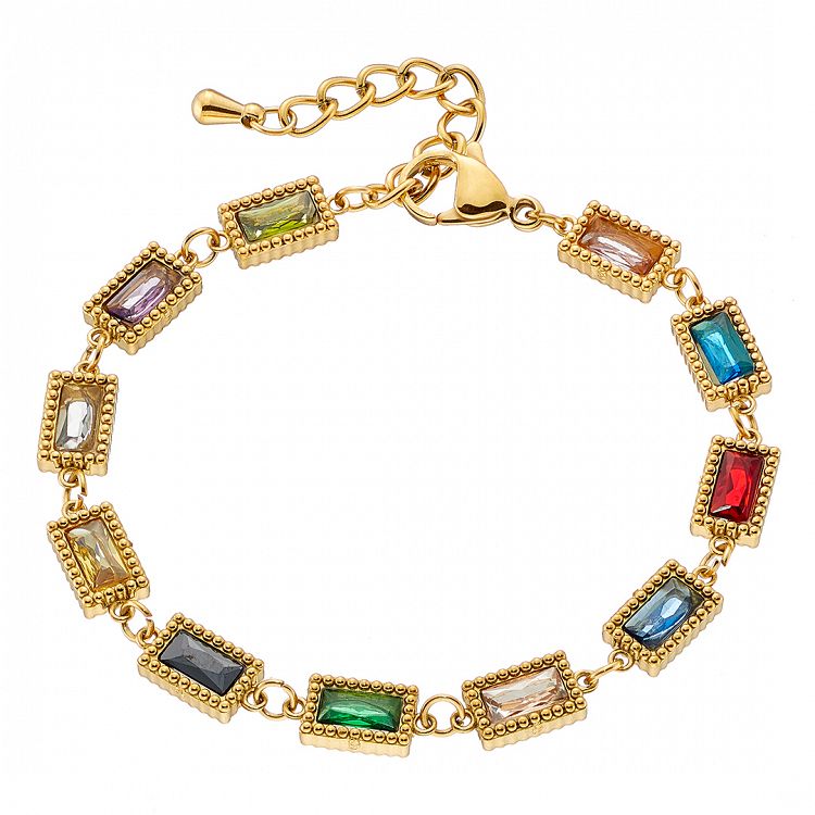 Βραχιόλι Από Ατσάλι Επιχρυσωμένο 24Κ Με Κρύσταλλα Πολύχρωμα ΑS21531