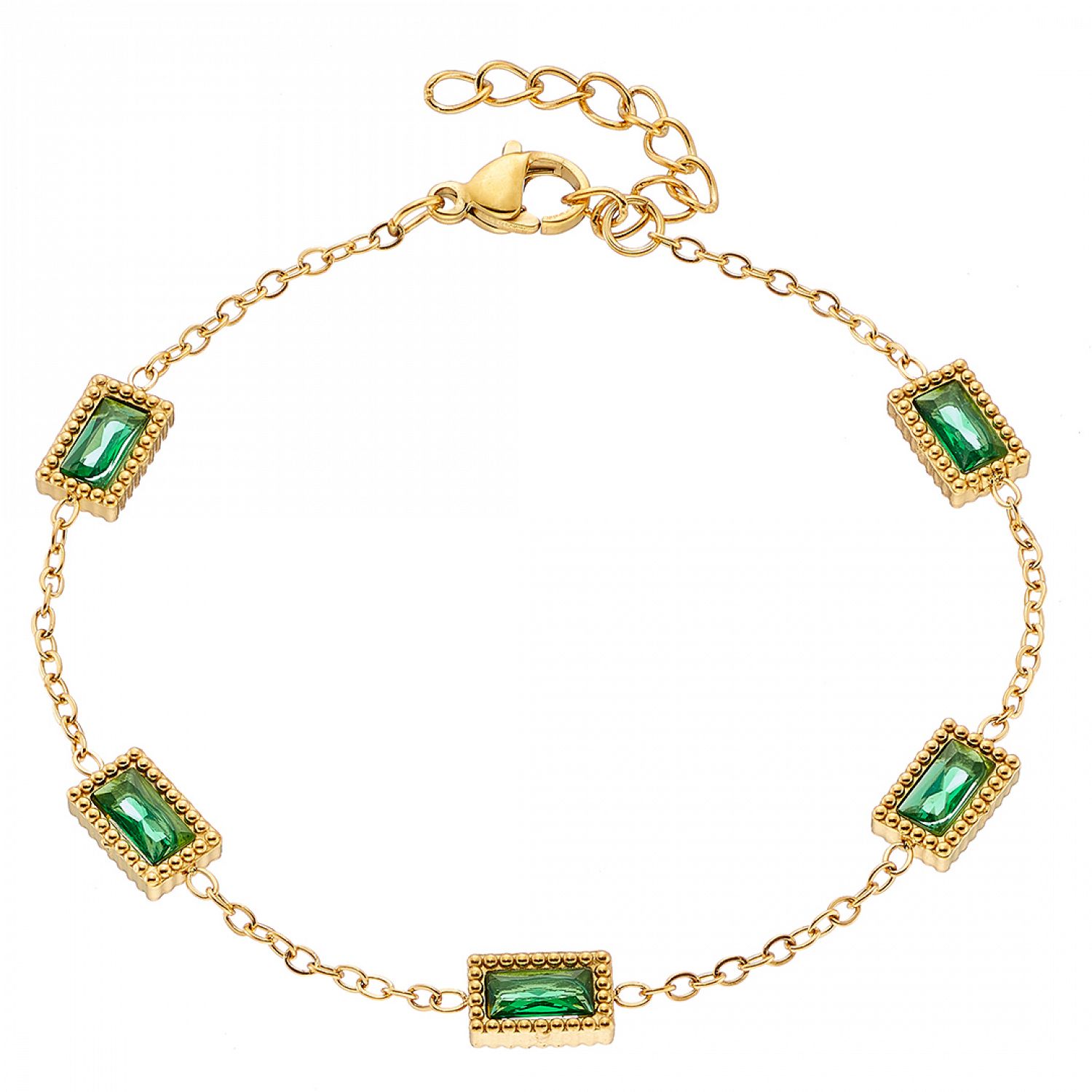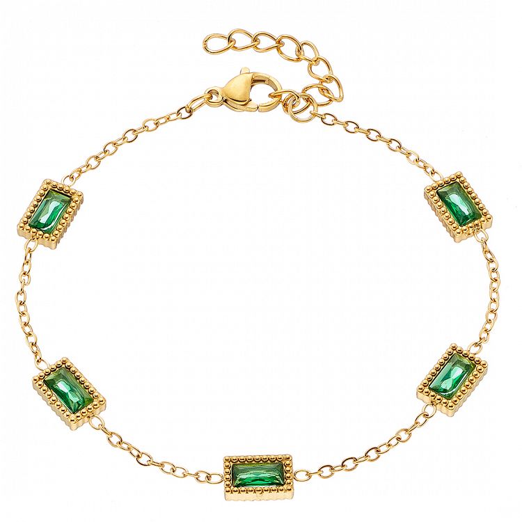 Βραχιόλι Από Ατσάλι Επιχρυσωμένο 24Κ Με Κρύσταλλα Πράσινα ΑS21526