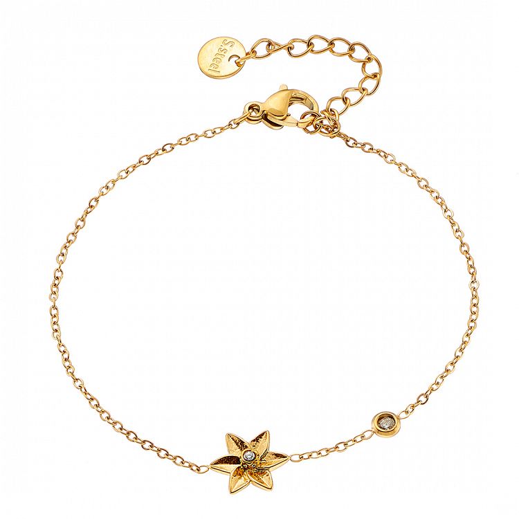 Μοναδικό χειροποίητο βραχιόλι της εταιρείας AMOR AMOR από ανοξείδωτο ατσάλι επιχρυσωμένο με κούμπωμα ασφαλείας. Κόσμημα από ανοξείδωτο ατσάλι δεν μπορεί σε καμία περίπτωση να υποστεί οξείδωση (σκουριά), δεν μαυρίζει ποτέ και ασφαλώς δεν δημιουργεί αλλεργίες (υποαλλεργικό). Μπορεί να φορεθεί καθημερινά και χωρίς κανέναν περιορισμό κάτω από οποιεσδήποτε συνθήκες π.χ. επαφή με νερό, ιδρώτα ακόμα και στην θάλασσα. Έτσι λοιπόν, ένα κόσμημα το οποίο είναι κατασκευασμένο από ανοξείδωτο ατσάλι είναι σίγουρο πως θα διατηρήσει για πάντα τη μοναδική λάμψη του.