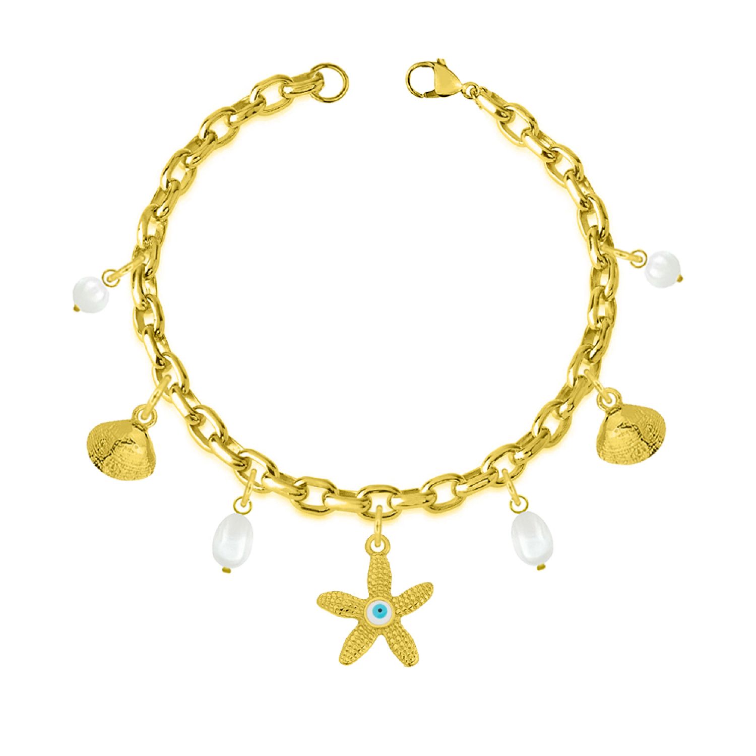 Βραχιόλι Από Ατσάλι Επιχρυσωμένο Με Κοχύλια Και Αστερία AA29707