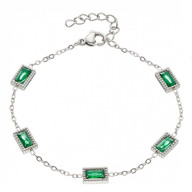 Βραχιόλι Από Ατσάλι Με Κρύσταλλα Πράσινα ΑS21525