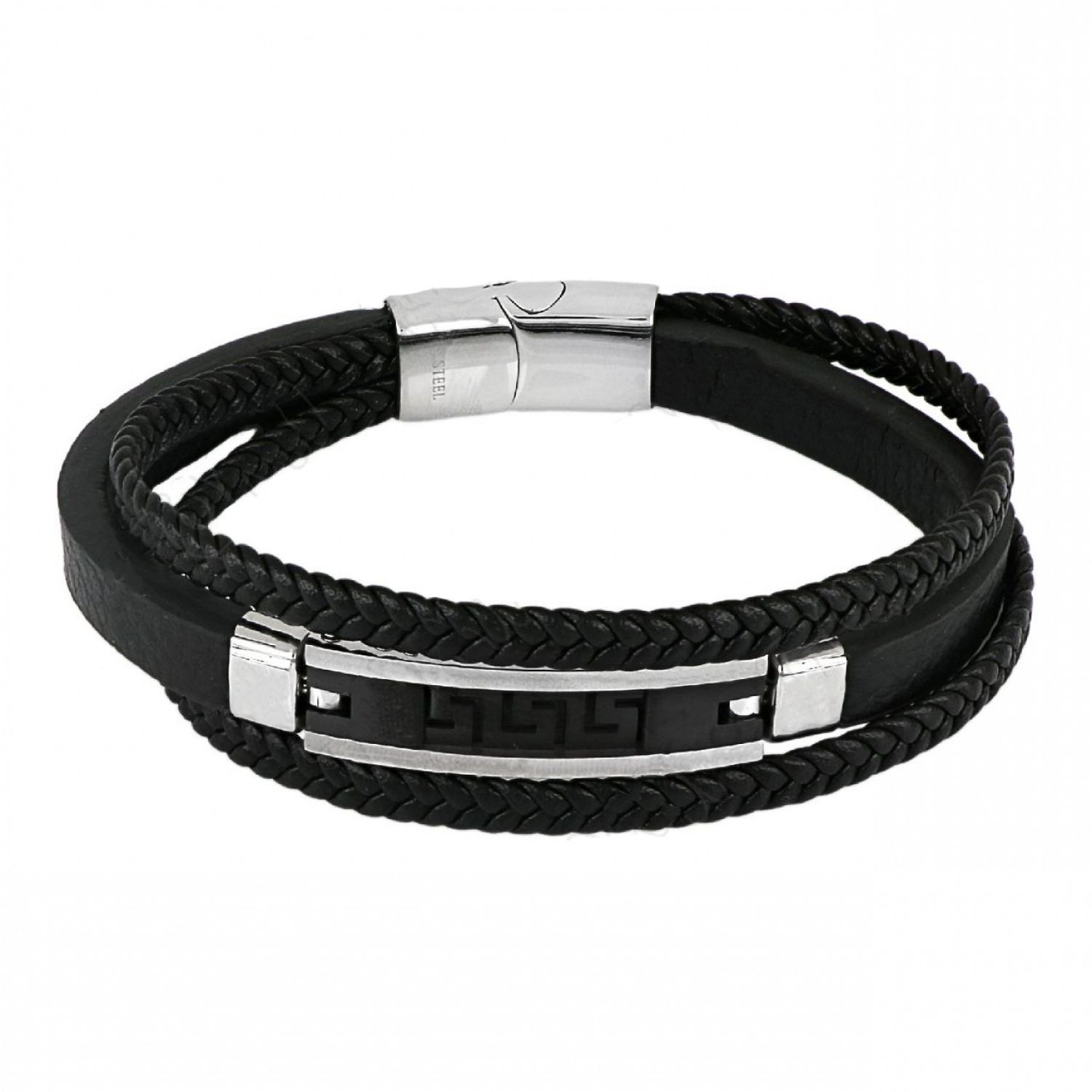 Βραχιόλι Από Δέρμα Και Ατσάλι Με Μαίανδρο TU29840