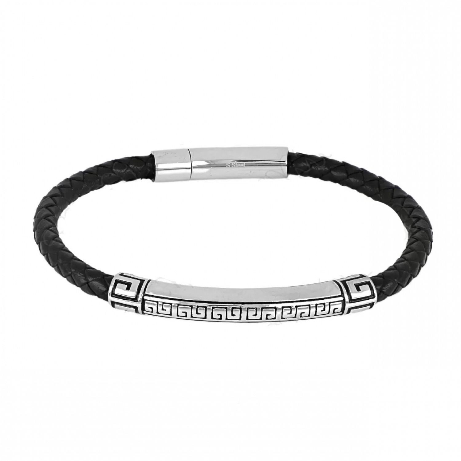 Βραχιόλι Από Δέρμα Και Ατσάλι Με Μαίανδρο TU29883