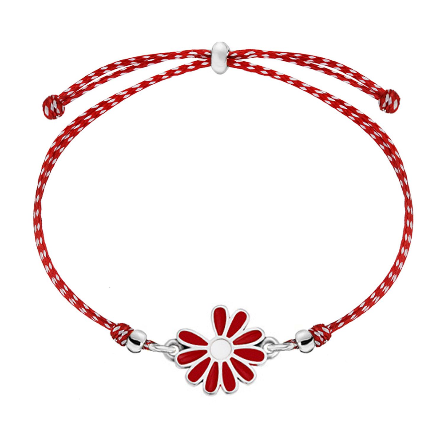 Βραχιόλι Μαρτάκι Με Μαργαρίτα Ασημί - Κόκκινη AA21026