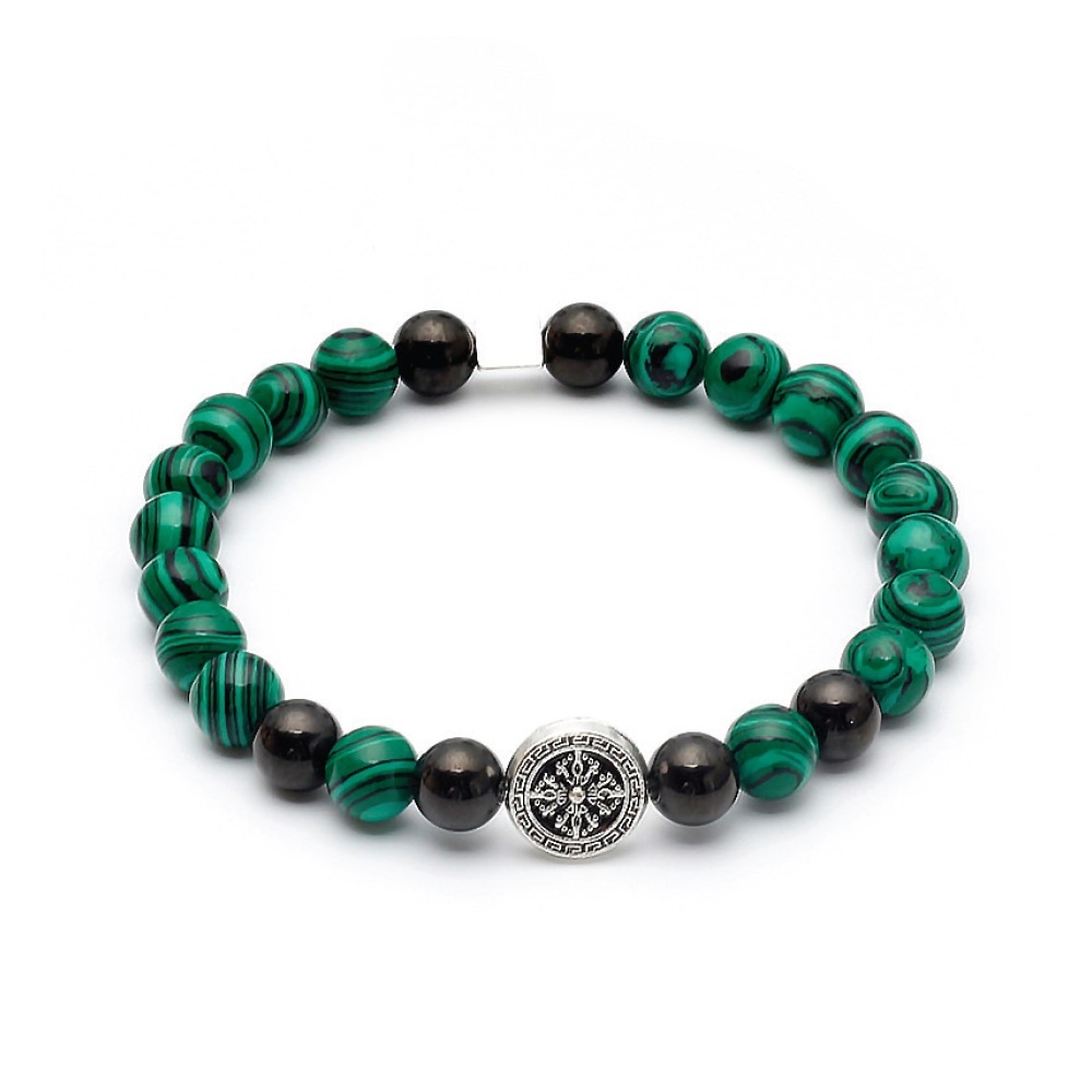Μοντέρνο ανδρικό βραχιόλι της εταιρίας Visetti Men [λefkό] με ημιπολύτιμους λίθους. Οι χάντρες είναι περασμένες σε ανθεκτικό λαστιχάκι για να ταιριάζει σχεδόν σε κάθε μέγεθος καρπού. Τα μεταλλικά στοιχεία είναι από ανοξείδωτο ατσάλι που δεν μαυρίζουν ώστε να είναι σίγουρο πως θα διατηρηθεί για πάντα η μοναδική λάμψη τους. Έρχεται σε βελούδινη θήκη δώρου υψηλής ποιότητας.