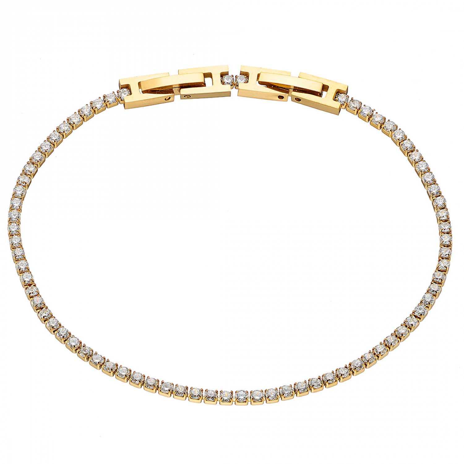 Βραχιόλι Ριβιέρα 2mm Από Ατσάλι Επιχρυσωμένο 24Κ Με Κρύσταλλα Λευκά ΑS21533