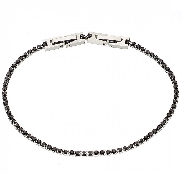 Βραχιόλι Ριβιέρα 2mm Από Ατσάλι Με Κρύσταλλα Μαύρα ΑS21534