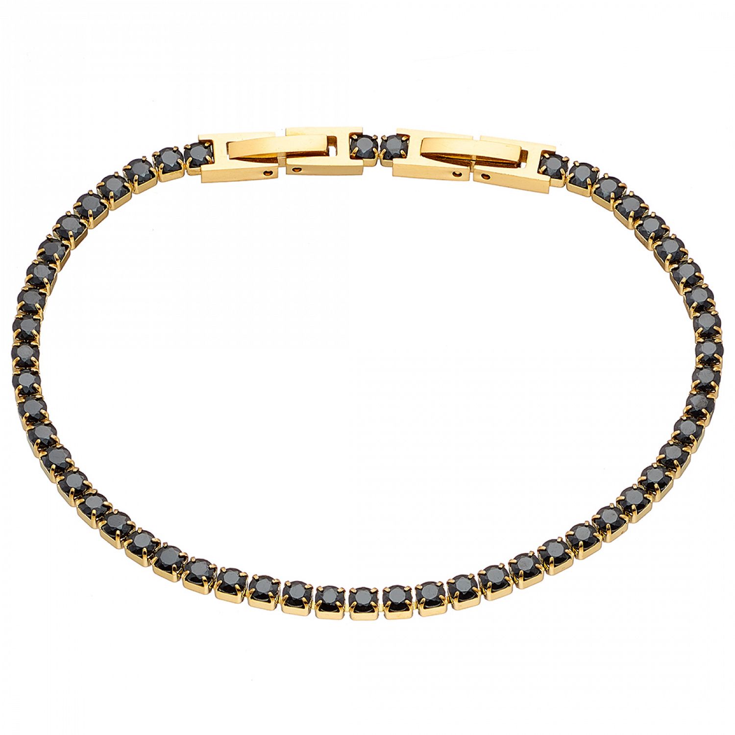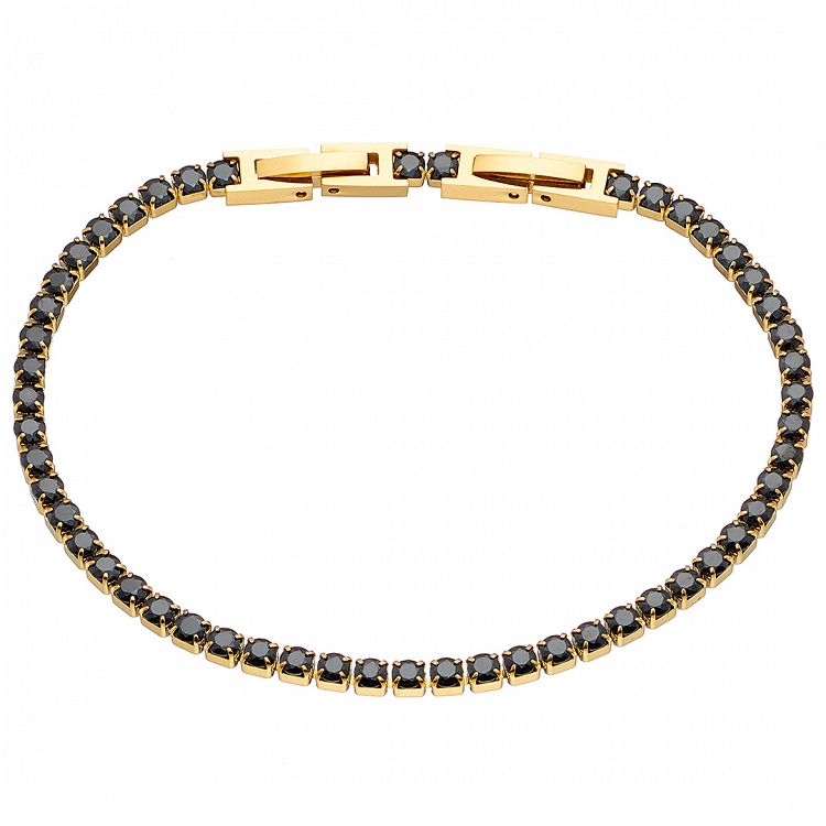 Βραχιόλι Ριβιέρα 3mm Από Ατσάλι Επιχρυσωμένο 24Κ Με Κρύσταλλα Μαύρα ΑS21541