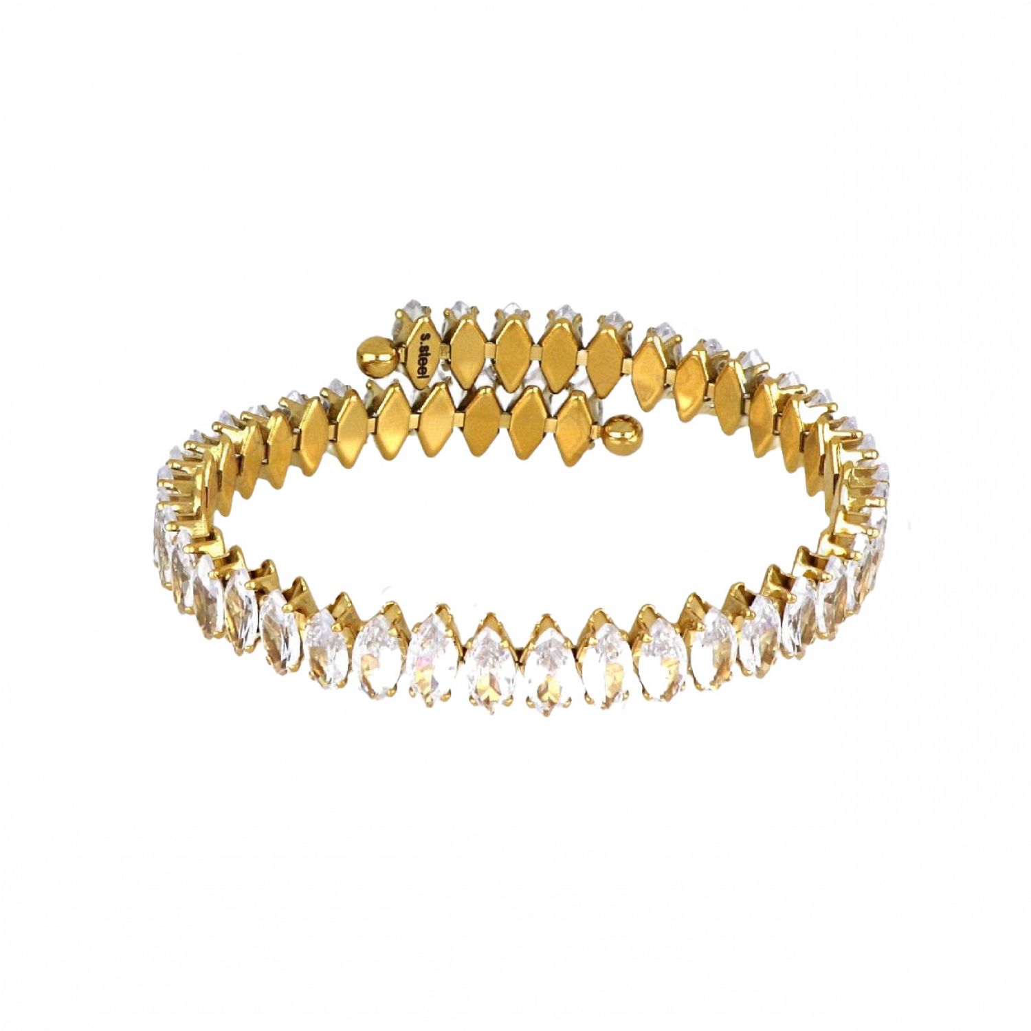 Μοναδικό χειροποίητο βραχιόλι της εταιρείας AMOR AMOR από ανοξείδωτο ατσάλι επιχρυσωμένο. Κόσμημα από ανοξείδωτο ατσάλι δεν μπορεί σε καμία περίπτωση να υποστεί οξείδωση (σκουριά), δεν μαυρίζει ποτέ και ασφαλώς δεν δημιουργεί αλλεργίες (υποαλλεργικό). Μπορεί να φορεθεί καθημερινά και χωρίς κανέναν περιορισμό κάτω από οποιεσδήποτε συνθήκες π.χ. επαφή με νερό, ιδρώτα ακόμα και στην θάλασσα. Έτσι λοιπόν, ένα κόσμημα το οποίο είναι κατασκευασμένο από ανοξείδωτο ατσάλι είναι σίγουρο πως θα διατηρήσει για πάντα τη μοναδική λάμψη του.