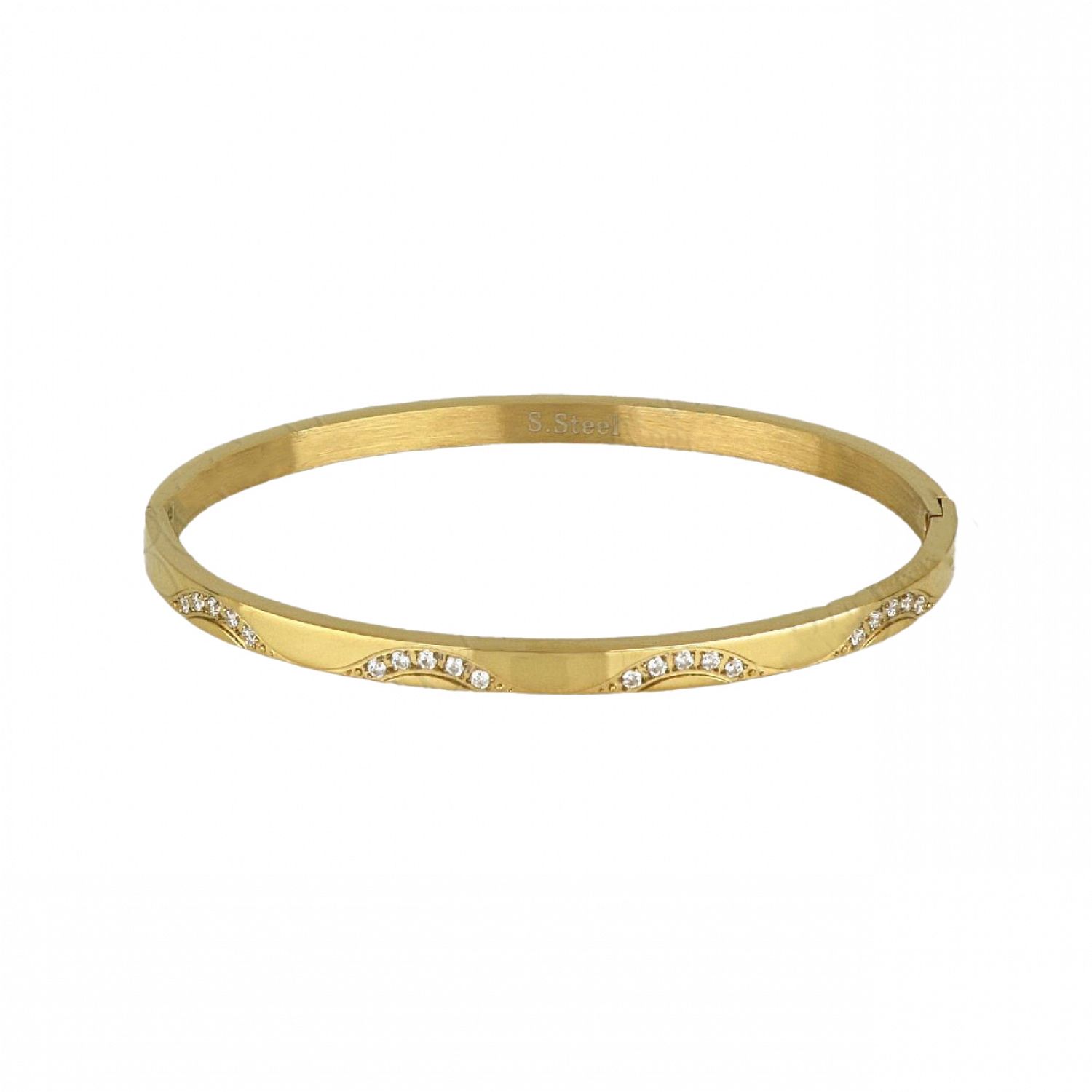 Βραχιόλι Βέργα Από Ατσάλι Επιχρυσωμένο Με Ζιργκόν TU29784