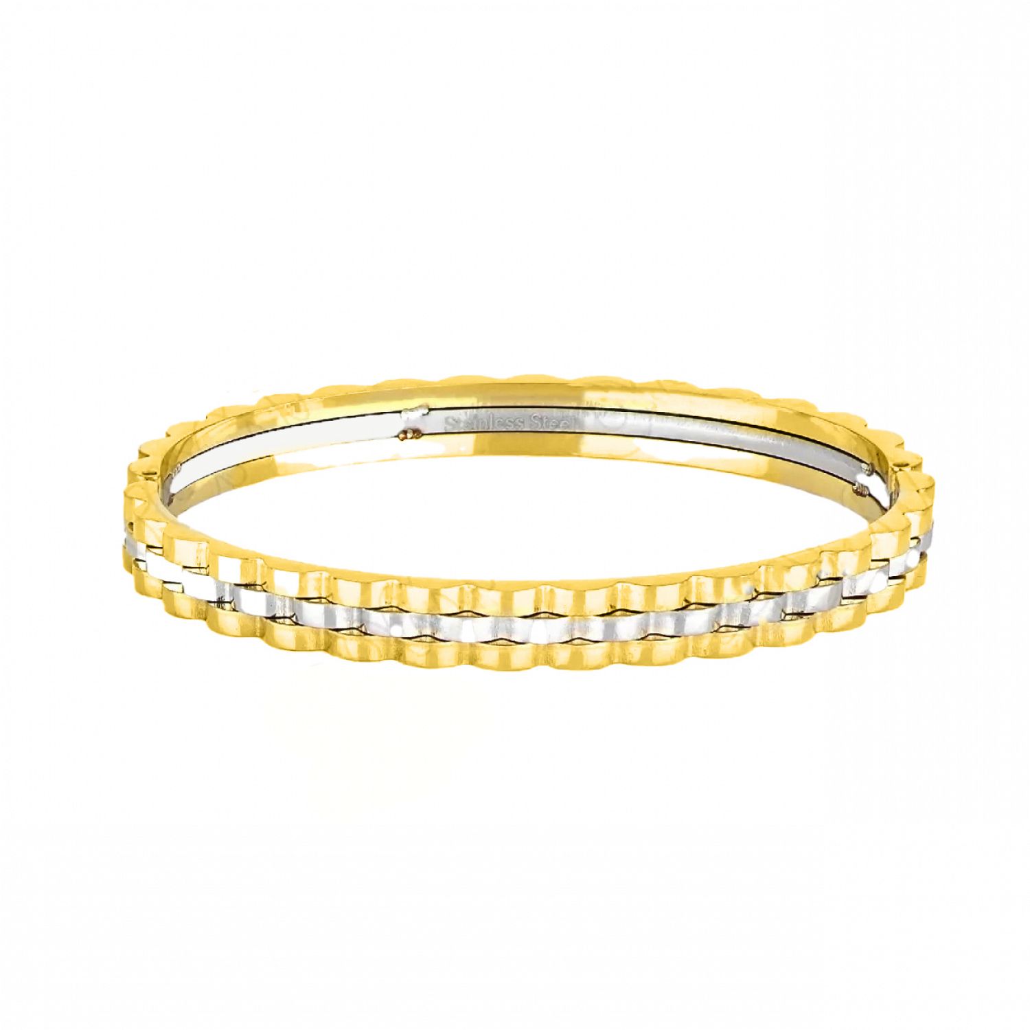 Μοναδικό χειροποίητο βραχιόλι της εταιρείας AMOR AMOR από ανοξείδωτο ατσάλι επιχρυσωμένο. Κόσμημα από ανοξείδωτο ατσάλι δεν μπορεί σε καμία περίπτωση να υποστεί οξείδωση (σκουριά), δεν μαυρίζει ποτέ και ασφαλώς δεν δημιουργεί αλλεργίες (υποαλλεργικό). Μπορεί να φορεθεί καθημερινά και χωρίς κανέναν περιορισμό κάτω από οποιεσδήποτε συνθήκες π.χ. επαφή με νερό, ιδρώτα ακόμα και στην θάλασσα. Έτσι λοιπόν, ένα κόσμημα το οποίο είναι κατασκευασμένο από ανοξείδωτο ατσάλι είναι σίγουρο πως θα διατηρήσει για πάντα τη μοναδική λάμψη του.