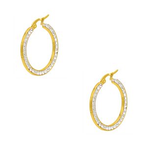 Σκουλαρίκια Κρίκοι Από Ατσάλι Επιχρυσωμένο 24Κ Με Καρδιά Λευκή AS47890