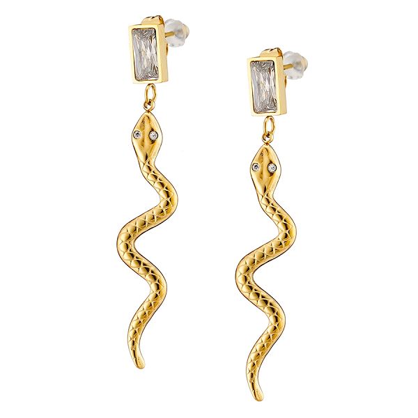 Σκουλαρίκια Από Ατσάλι Επιχρυσωμένο Φίδι Με Ζιργκόν AS48869